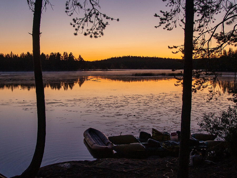 На четвёртый день нас ждут первые пороги, Белый Клык и Мураш. Пройдя их, встаём на ночлег на озере Новое.
