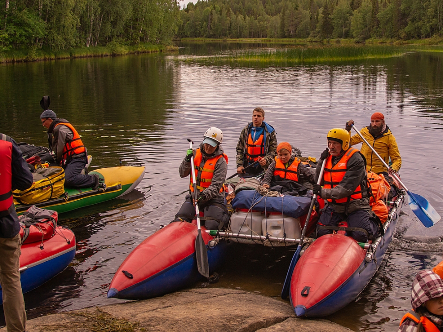 Разбиваем лагерь и готовим наш флот к выходу на воду. Здесь же проводим инструктаж.