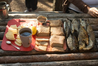 Готовим сами: Продукты (полноценный рацион) закупает орг-команда. В начале похода мы распределяем дежурства.